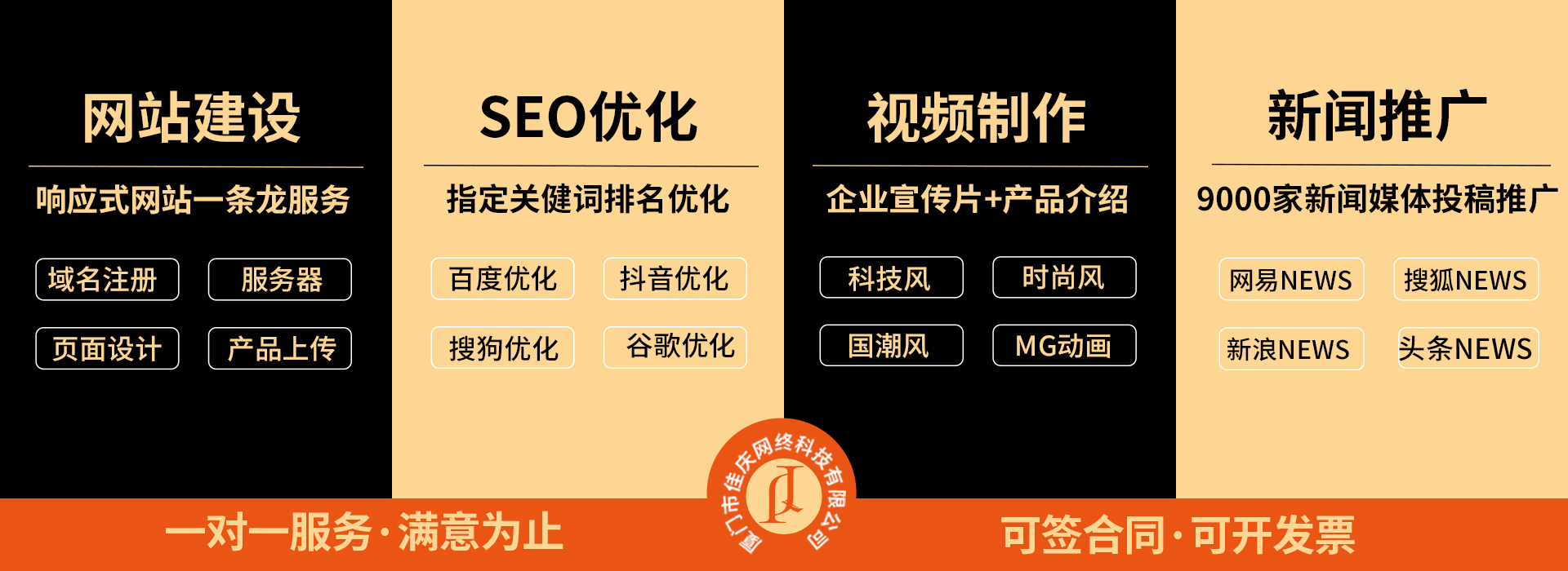 H5響應式網站搭建設計.外貿網站制多.站群推廣.百度谷歌SEO優化推廣.媒體新聞投稿.小程序公眾號開發.視頻宣傳片制作.企業郵箱滿足不同行業客戶的各種需求